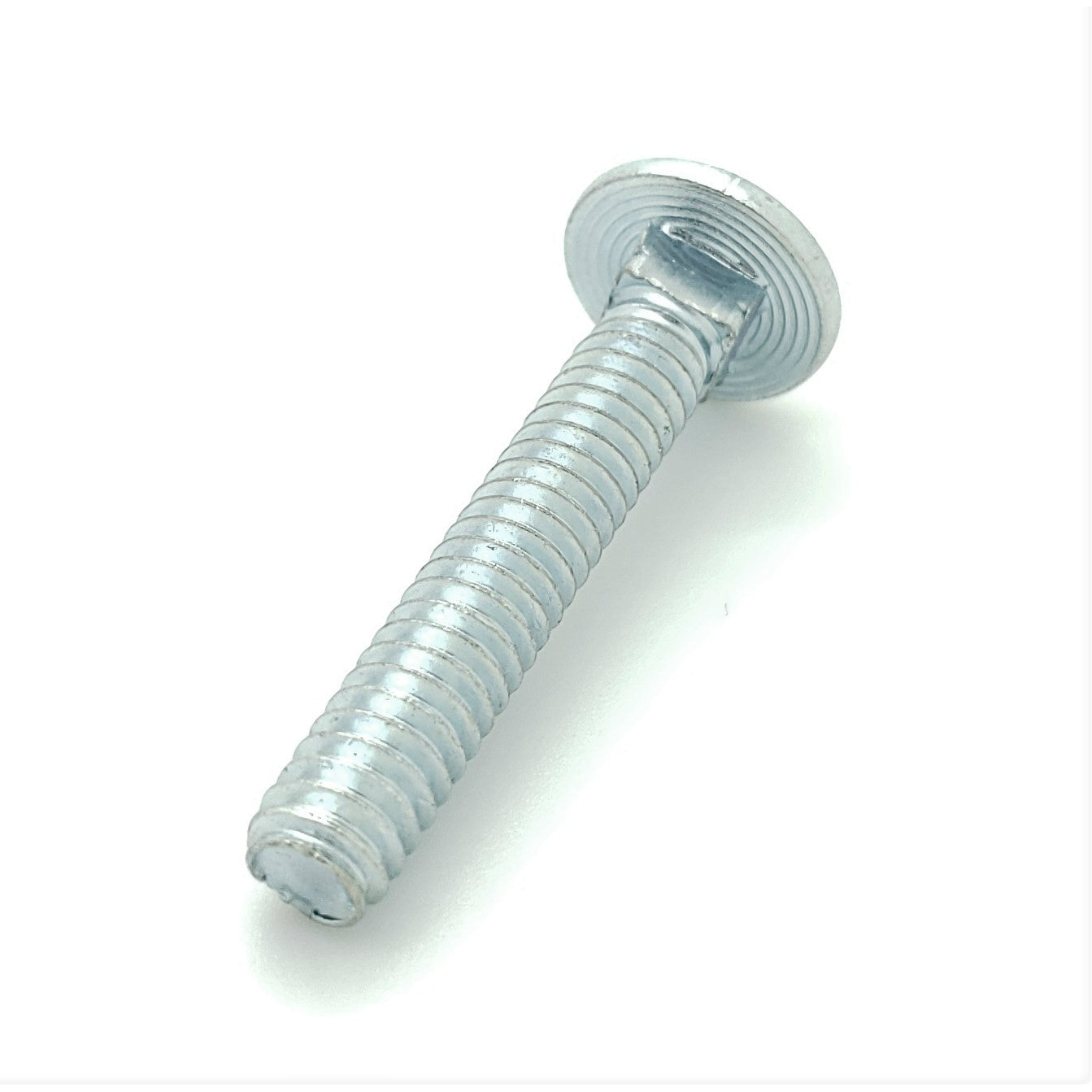 Carriage bolts are distinguished from other bolts by its shallow mushroom head and the portion immediately beneath the head is formed into a square section. This makes the bolt self-locking when placed through a square hole in a metal strap, or a round hole in most wood. This allows the fastener to be installed with only a single tool, a spanner or wrench, working from one side. The head of a carriage bolt is usually a shallow dome. The squared section is of the same size as the diameter of the bolt shank, with a plain unthreaded shank.