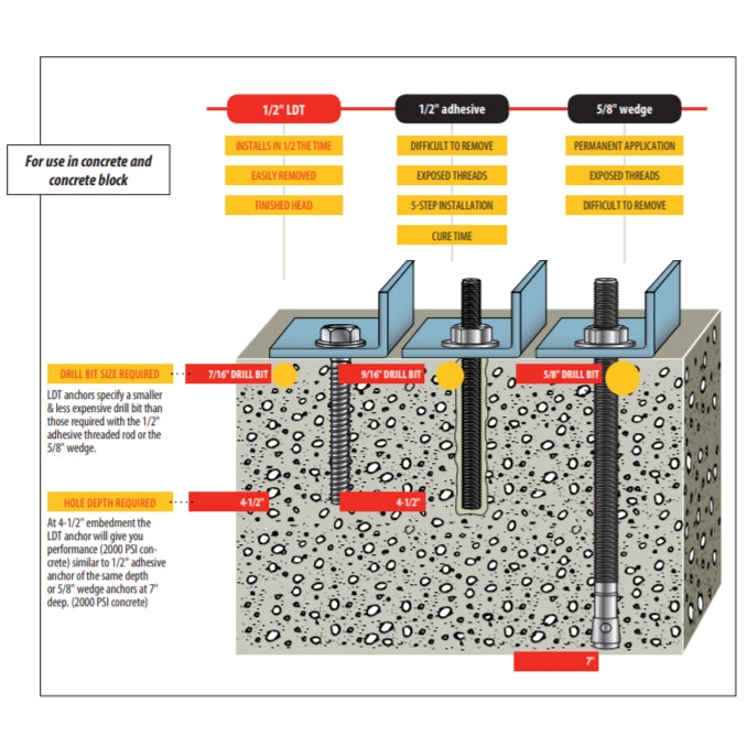 - Simply drill a pilot hole and drive the SLDT anchor by hand or impact