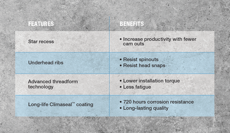 - Advanced thread form reduces installation torque by 30%, allowing for use in a wider range of materials